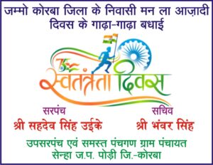 प्रखर राष्ट्रवाद न्यूज कोरबा:- कलेेक्टर संजीव झा के निर्देशानुसार आजादी के 75वीं वर्षगाठ के अवसर पर प्रतिवर्ष की तरह इस...